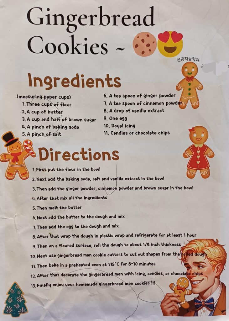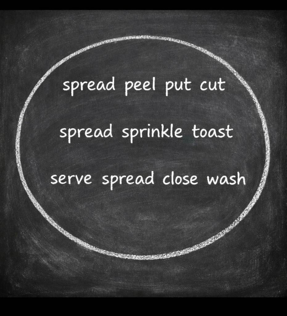 Once the students have completed the task, the teacher returns to the board and, with the students’ help, writes out the rest of the recipe’s instructions. So the final board picture with the completed recipe will look something like this: